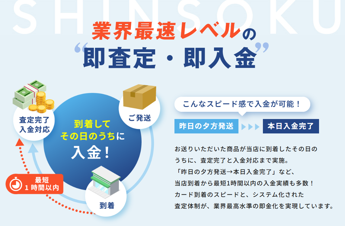 業界最高峰クラスの利用者数を誇るネット買取サービス。独自の通販感覚で商品を追加できる簡単システムと、商品到着後最短1時間で自動振込が完了する圧倒的なスピードが好評を博し、日本全国から大量の商品を仕入れています。業界トップクラスの買取実績と流通力を誇ります。